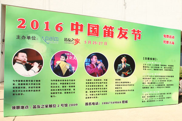 【中國演藝科技網訊】PALM 2016北京樂器展已于25日在北京老國展隆重拉開序幕,該器樂盛宴將持續到28日。與會者都知道,在這里,您會看到民族彈撥、吹管、拉弦、鍵盤類產品;還能見到西方管樂、打擊、吉他、電聲、提琴等等;不光有多樣的器樂創新、改良產品,還有豐富多彩的活動,如音樂教育高峰論壇、企業技術講座、專家展演等,其中最吸引受眾的當屬互動笛友節現場活動:戶外簽名環節及免費調音活動。