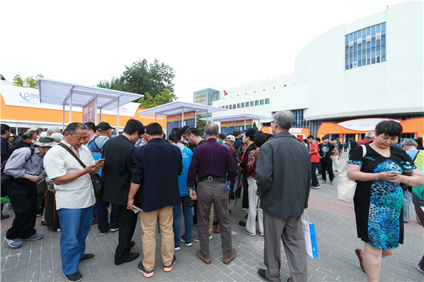參展觀眾絡繹不絕,耐心等待進場